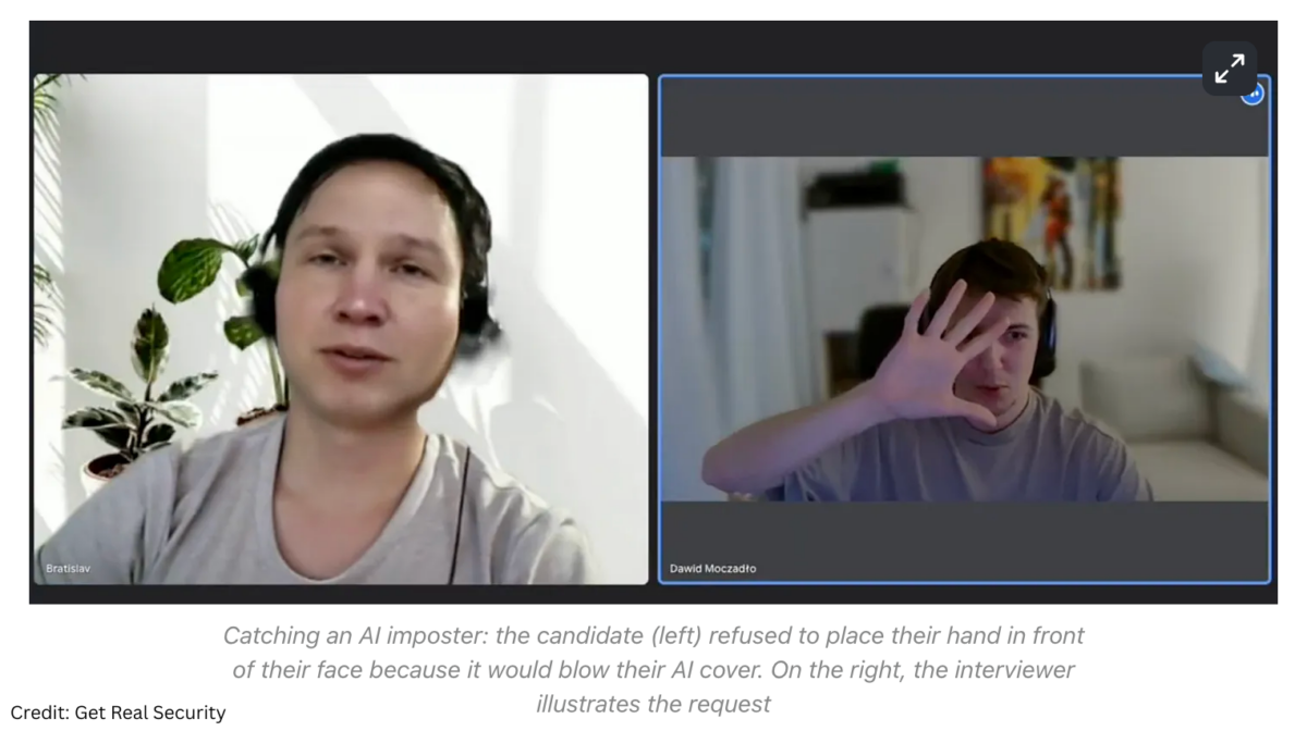 The AI technology has gotten so good that that doesn’t really cause an issue anymore. So I would actually recommend that anyone who’s doing remote hiring, you need to actually have a process where you’re doing in-person verification of identity.