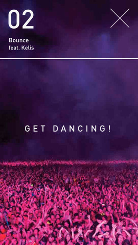 “[The app is] the perfect partner for a run or gym session (or a personal rave!), you have to keep your iPhone [or Android] moving to keep the track playing. With secret tracks and content to unlock, it’s a whole new way to experience one of the biggest albums of the year”