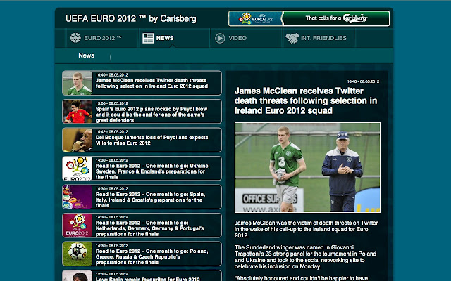 Chrome users will be able to get the latest information on the tournament directly to their browser using Google’s collection of official and unofficial Euro 2012 browser apps. Here you’ll definitely want to add will the Carlsberg’s UEFA Euro 2012 app. This app will show you the latest news from the tournament, video highlights, as well as live alerts for each match.