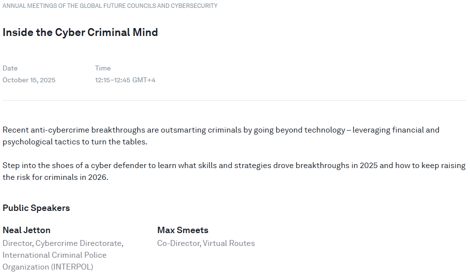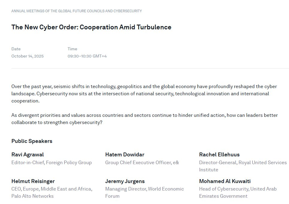 From October 14-16, the joint WEF Annual Meetings of the Global Future Councils and Cybersecurity will be held in Dubai, UAE.