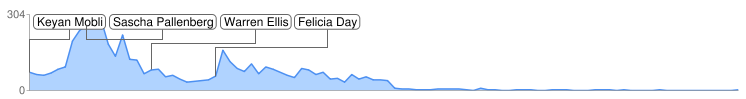When the post was beginning to die down, +Felicia Day stepped in and reshared, but you won’t see her clearly in the graph. This brings up my favorite part of it all. The path to her begins with me, goes through +Serge Ivanov, to +Anuj Ahooja, +Pearl Chen, and then finally to +Felicia Day where it starts it’s own microorganism. Zoom into that part of the graph to see it all.