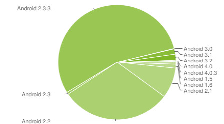 The Guardian’s figures come from data on Android’s website, which was last updated on January 3 2011. According to these numbers about 55% of Androids are running Gingerbread (Android 2.3+), about 30% of the devices are running Froyo (2.2) and about 10% are running earlier Android versions.