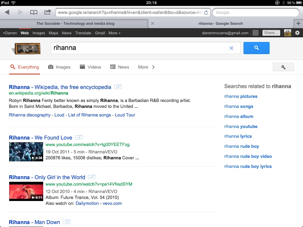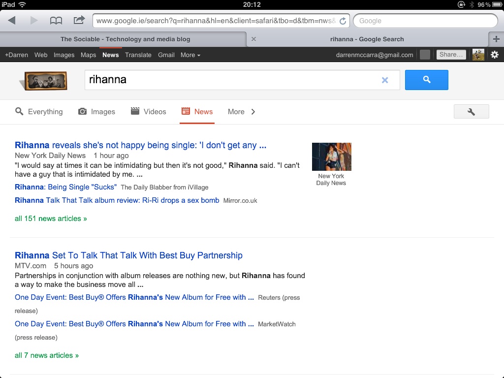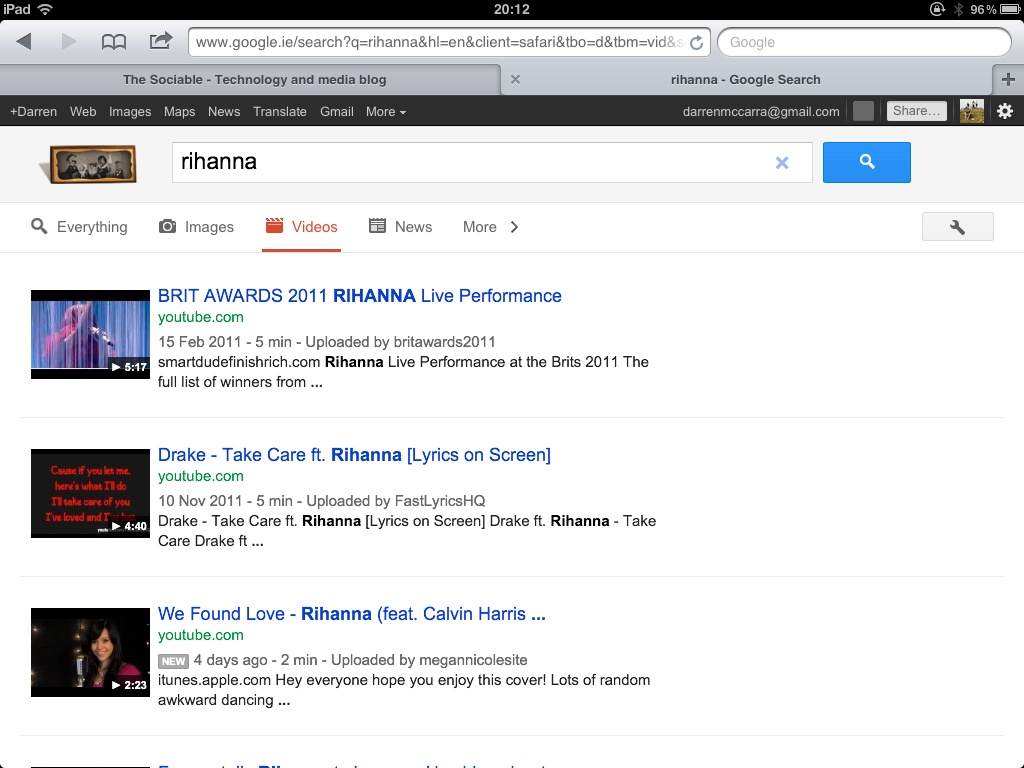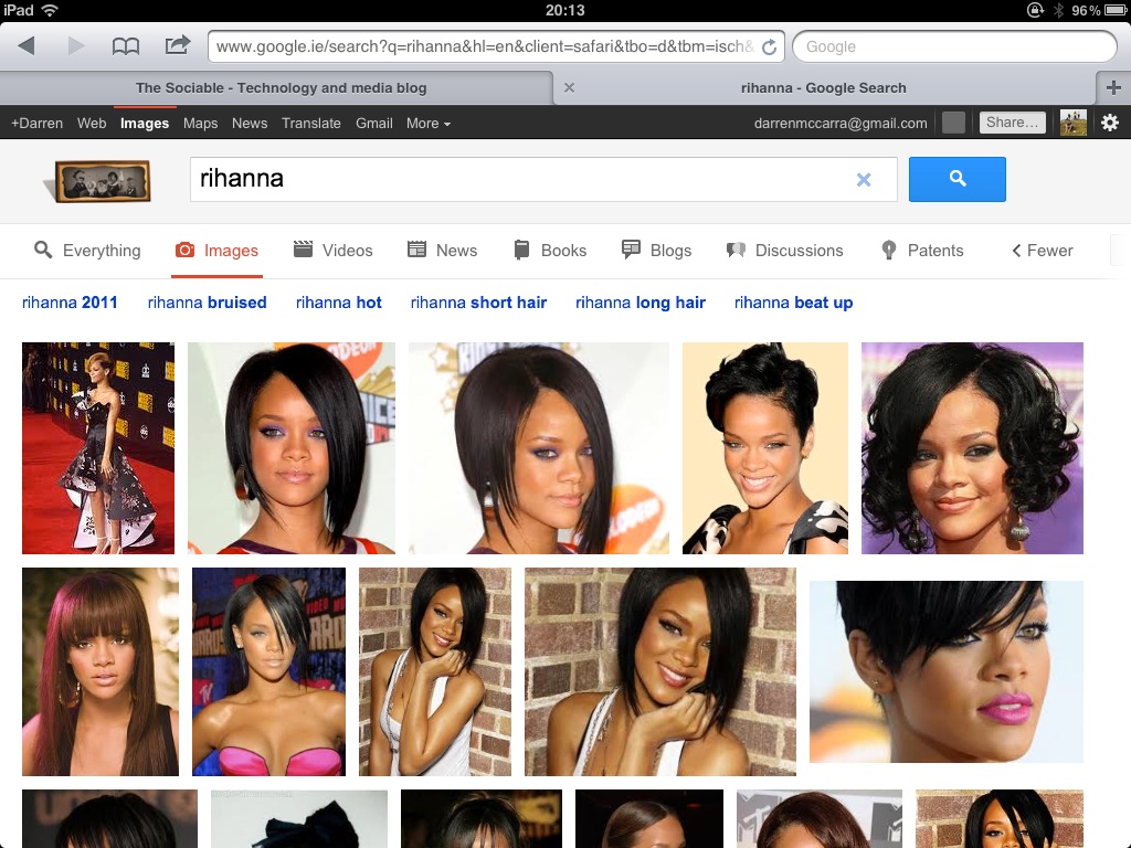 Images, Videos and News filters are now immediately accessible above search results using tablet-friendly chunky buttons. A ‘More’ button reveals less-common filters Books, Blogs, Discussions and Patents.