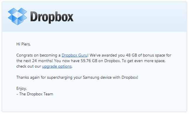 This isn’t totally a new deal between the companies – Samsung and Dropbox have been partners for a number of years, as any owner of a Samsung Galaxy SIII or Note II will know. For a while now owners of these devices have been able to sign into their Dropbox accounts on activation. And been awarded with an additional 48GB of free space on the site for doing so (albeit for only two years).