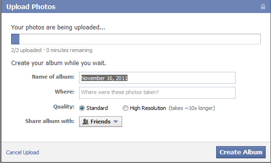 Also like Google+, the Facebook uploader update allows users to begin editing uploaded images as others are still in progress; although to be fair, Facebook allows you to caption images too. As before, users can review their new albums before they publish.