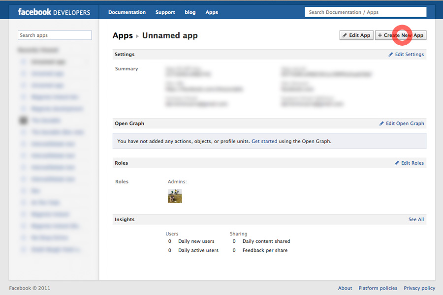 1. Follow this link and click Create New App (You may be asked to allow special permissions at this stage).