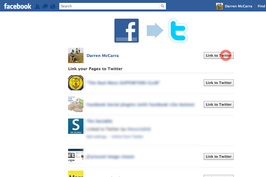 1. Facebook has allowed its users to automatically share updates to Twitter for some time now, although this feature is not widely known. Simply go to facebook.com/twitter and click the Link to Twitter button under whichever Facebook profile or page desired. If you only have a personal account (and no associated pages) you should see one Link My Profile to Twitter button instead.