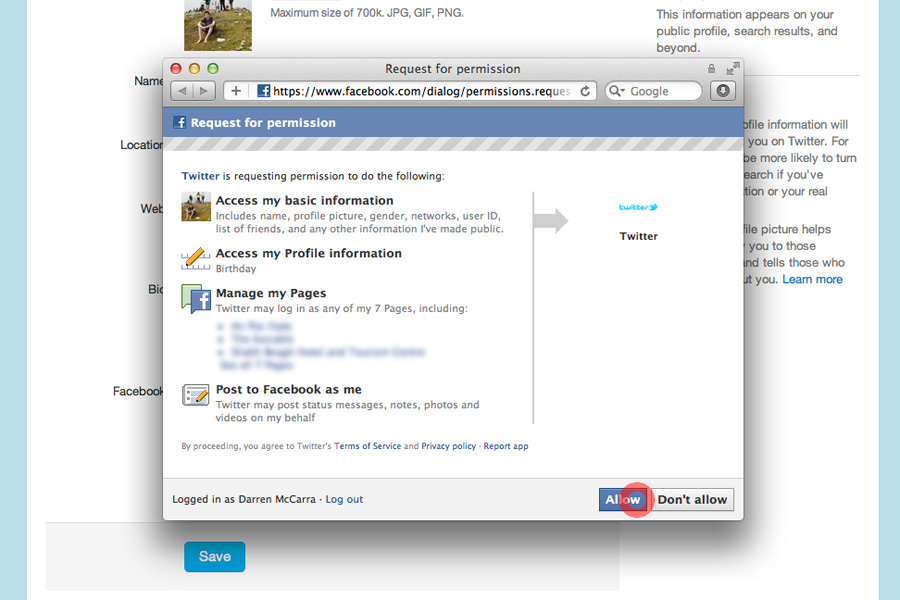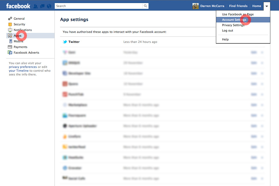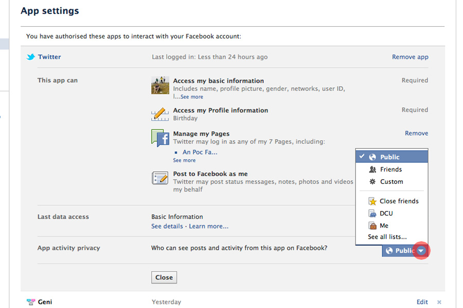 4. What about privacy? You can change this inside Facebook’s Account Settings under the Apps tab. Click the small Edit button beside the official Twitter application and use the menu under App activity privacy to control exactly who can see your tweets on Facebook – from totally public, to just friends, select friends or networks.