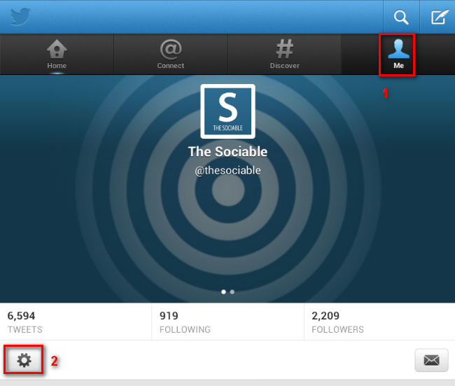 - Once the app is updated you should be able to add your own banner image by clicking on Me (top right of the screen – see image below) and then clicking the cog icon (on the left under your tweet count).