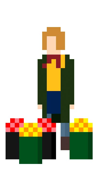The characters represent Dublin’s thousand-year history; from its Viking foundation, to more modern characters. Singers such as Imelda May, Phil Lynott, and the ever present traditional buskers are represented by 8 bit charactures, as are literary characters from Dublin’s past; such as Oscar Wilde and Bram Stoker (through his creation, Dracula).