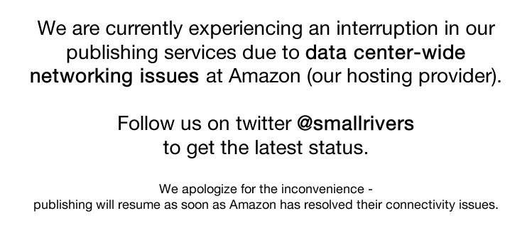 Today’s server outage began at about 6 am GMT (1:00 am PDT) and was caused by “connectivity issues” in Amazon’s North Virginia data farm. At 1:40 am Amazon reported that, “We are currently investigating latency and error rates with EBS volumes and connectivity issues reaching EC2 instances in the US-EAST-1 region.” The company’s latest release, issued 11 hours later at 5:30pm GMT (~6 pm PDT) said that they had seen some improvements but were still working on the problem. At the time of writing the sites listed above are still inaccessible.