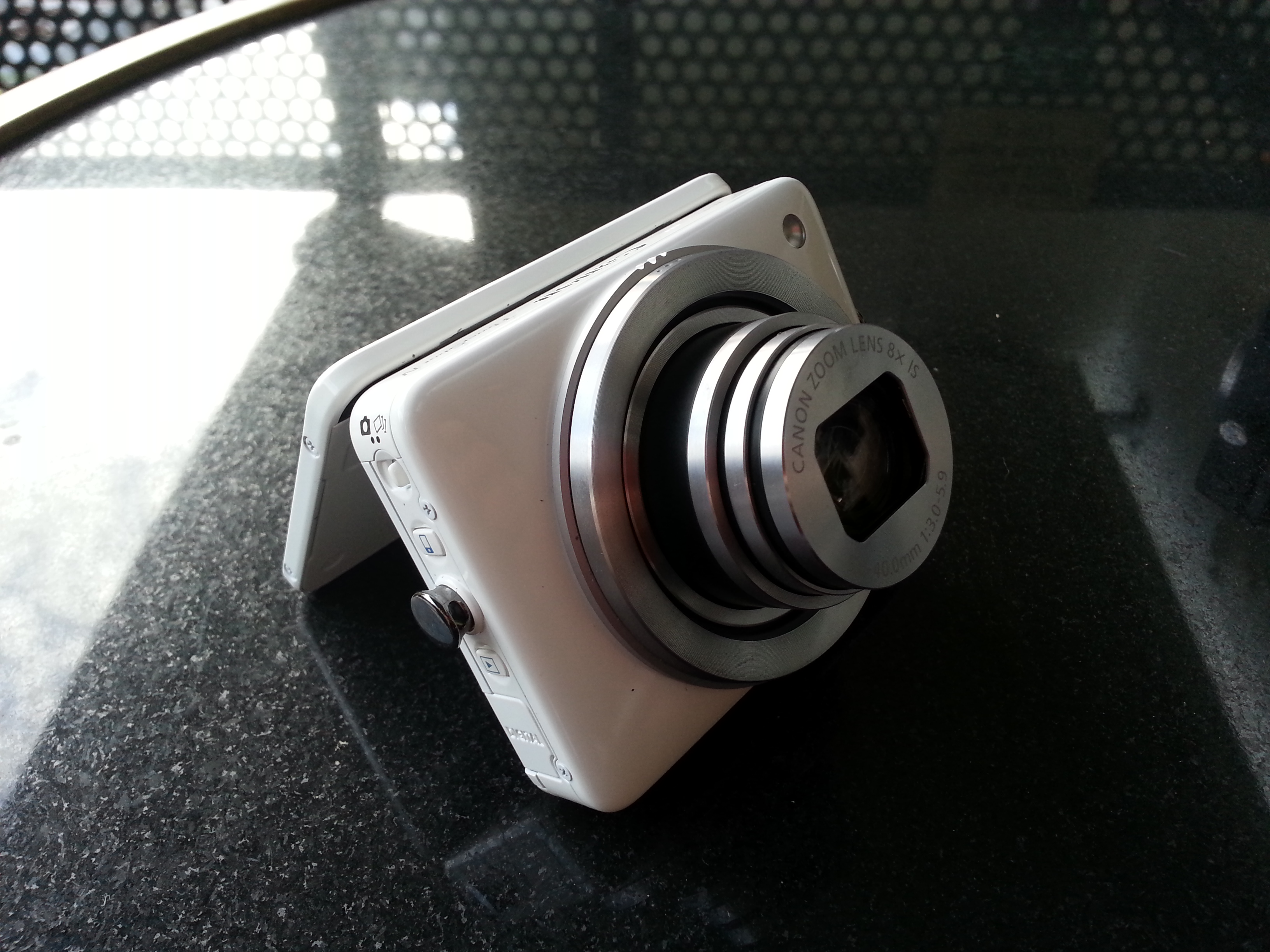 First, the design of the camera is unique. At about half the length of a Galaxy SIII, this is certainly a compact camera. It’s so small that Canon has added two grips either side of the chassis to make it easier to hold. The camera is thicker than a smartphone, but this is mostly to accommodate the 8x zoom lens.
