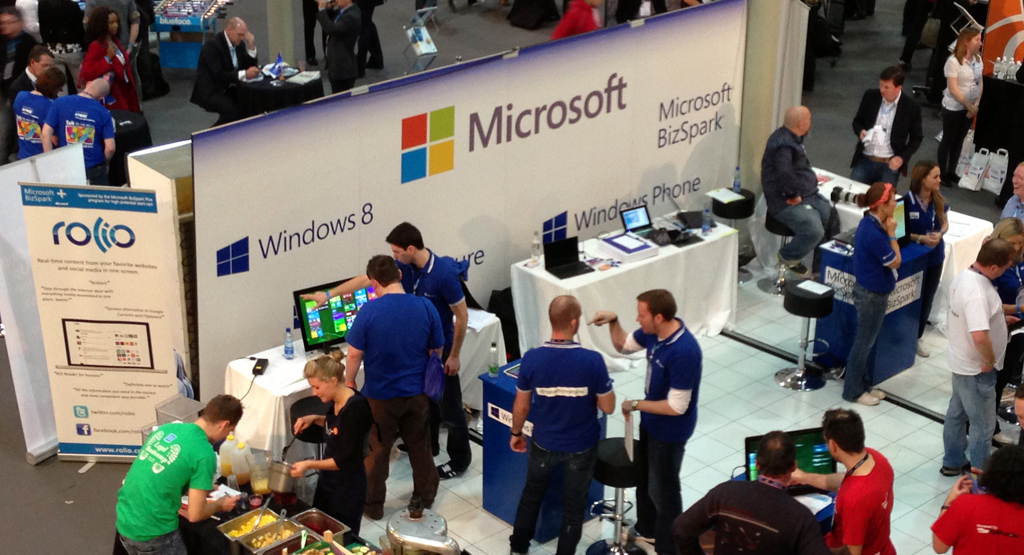 After some deliberation, we decided to ask Microsoft if we were able to place the banner on their stand, given that we are sponsored by them under their BizSpark Plus program for high potential start-ups. Microsoft kindly agreed and before long the Rolio banner stood in prime Web Summit real estate on the ground floor, where foot traffic was at its highest.
