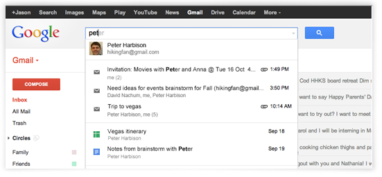 Gmail users have always been able to use Gmail’s search field to search the web (but we imagine very few actually did use this feature). This will be the first time that users will be see results from their inboxes appear in their regular Google search results page (SRP). In its announcement of the Field Trial Google says that users’ Google Drive content will also be visible to users on the SRP.