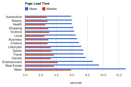 News websites are among the slowest on the web. They do tend to be media heavy and include every social share button imaginable, so this is perhaps unsurprising. The fastest loading websites by genre are those involved in the automotive industry, beauty and health.