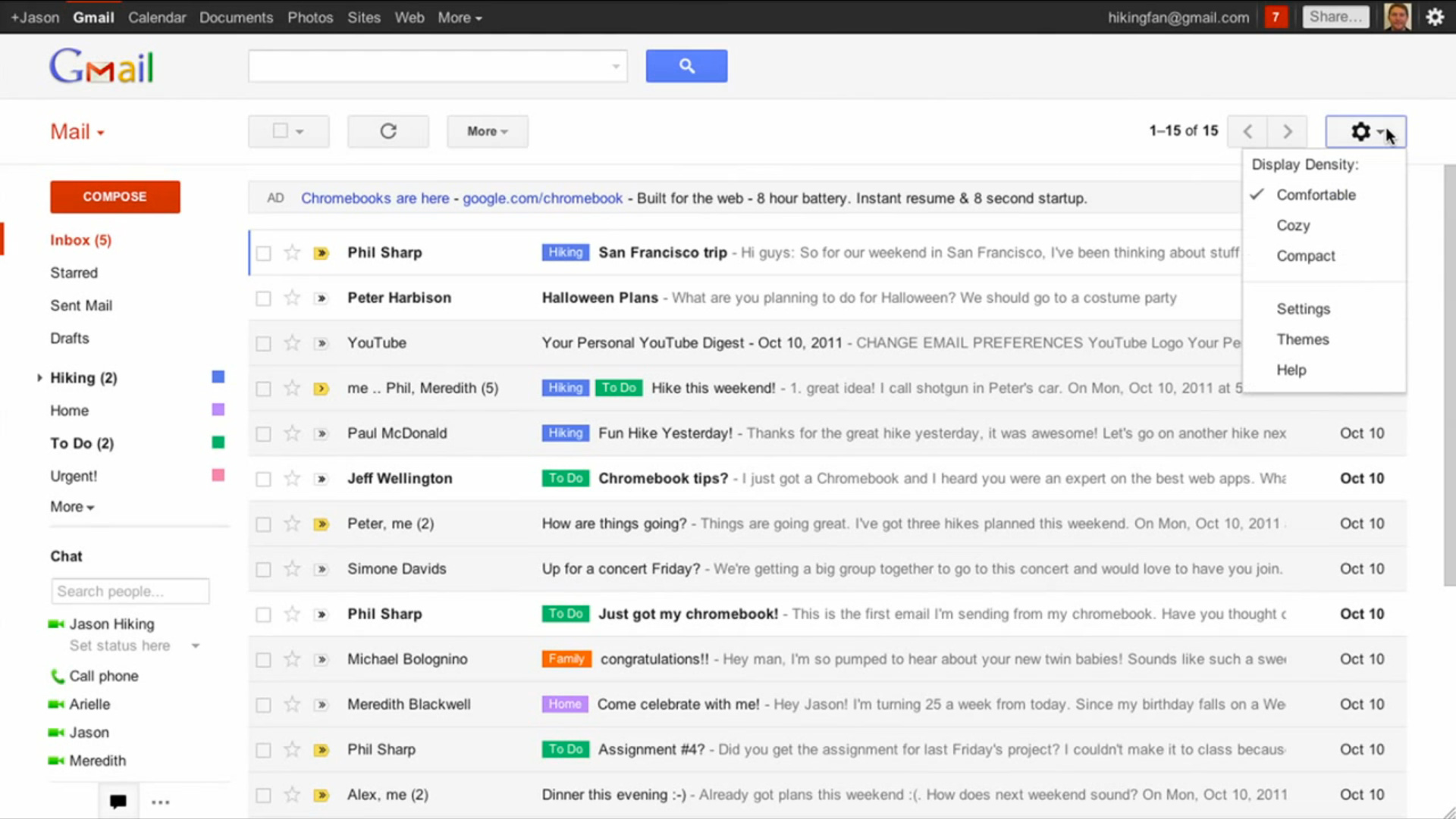 The new “modern look” interface is very similar to the two Gmail preview themes released during the summer, both of which can be applied by following this guide. As promised, the new Gmail dynamically adapts to fit users’ screen sizes, as the variation of device displays continues to grow. The display density can be changed from Comfortable, to Cozy or Compact to keep novice and power-users alike content.