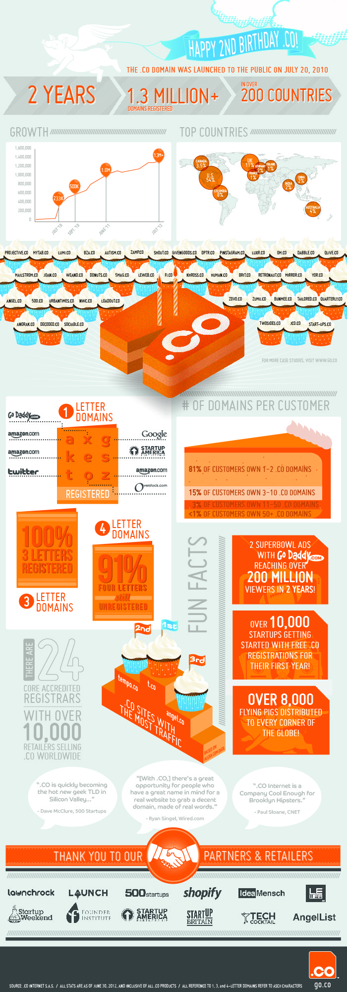 The infographic reveals that over 10,000 start-ups registered a .CO domain in its first year, of which we were one. It was today in 2010 when we registered our domain (at 1:30pm). Of course, a lot has changed since we set up the domain (we used to discuss plans on Google Wave…) but one thing has not, the continued success of the .CO domain.