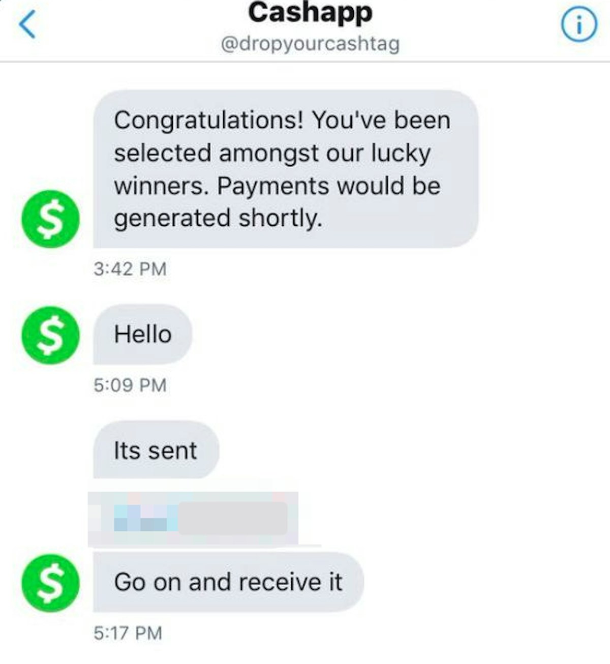 Here’s a message from a Cash App scammer. Notice the unprofessionalism, which is a dead giveaway that it’s a scammer.