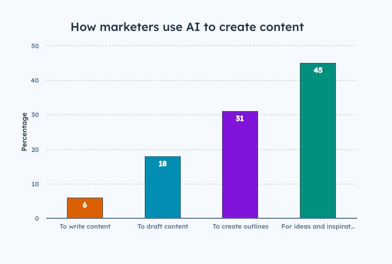 However, as The State of Marketing Report 2024 by HubSpot highlights, the percentage of marketers using AI to write content is rather small.