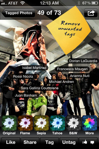 Photobox! for iPhone, however, makes mass untagging of Facebook images a lot simpler. Overall it’s a Facebook photo managing app, but it’s most useful feature is undoubtedly photo untagging.