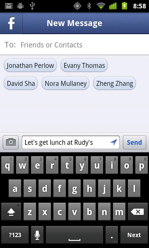 The app only lets you message friends that are on Facebook and, unfortunately, doesn’t synchronise with existing phone contacts to deliver messages via SMS.