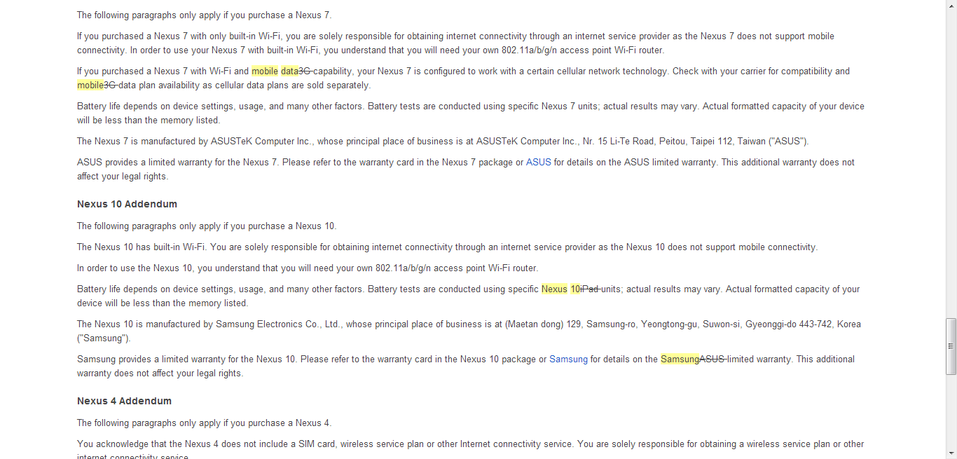Oops, here’s an embarrassing one for Google – the big G seems to have copied part of Apple’s iPad terms and conditions for its Nexus 10 terms and conditions (and left in a reference to the iPad in the process).