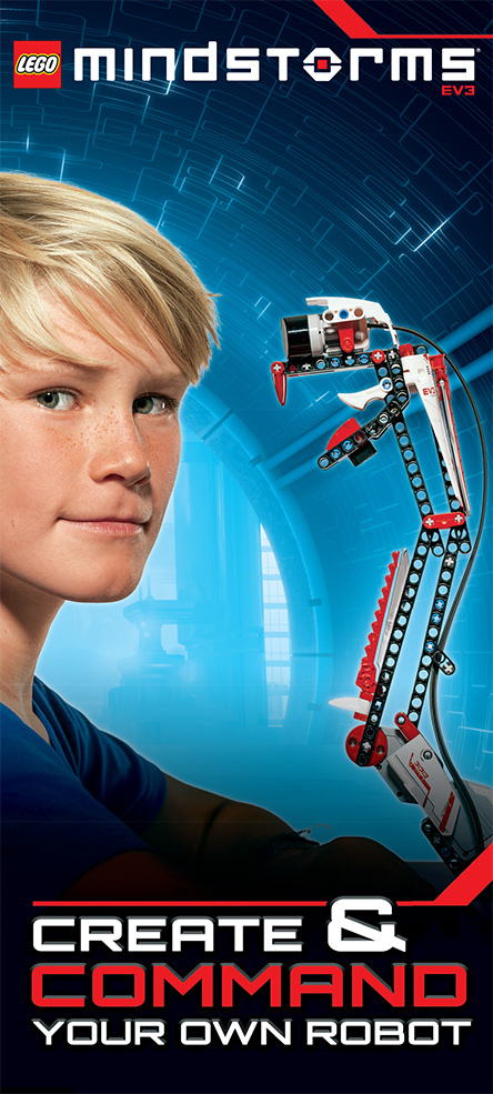 “With LEGO MINDSTORMS EV3 you can turn your LEGO creations into live robots that follow your every command. The new LEGO MINDSTORMS EV3 set includes everything you need – motors, sensors, programmable brick, 550+ LEGO Technic elements, remote control – to create and command robots of even your wildest imagination, including 5 cool robot characters.