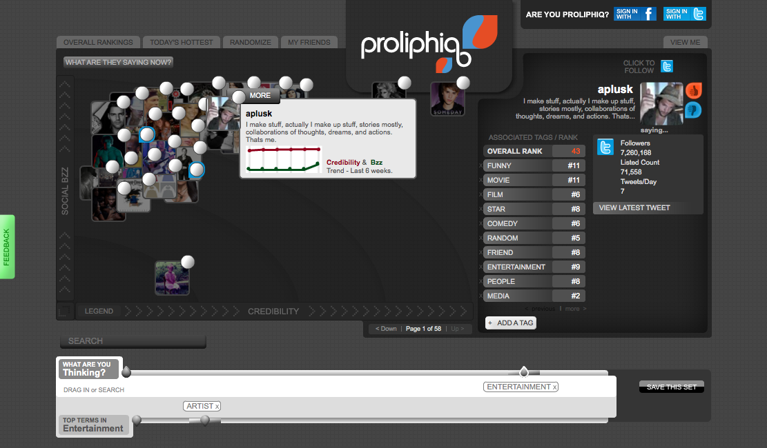 It is this need to find authoritative sources which led to Proliphiq’s creation. According to the company’s CEO, Adam Roozen, Proliphiq came from a need to identify quality sources over the huge quantity of data on the social web, Roozen says, “As fast as social media is growing it is not growing as fast as it could, simply because it is very complicated for new users. Proliphiq will become the starting point for new users who will be able to see which people are important or relevant. There is a need for a market place of quality users.”