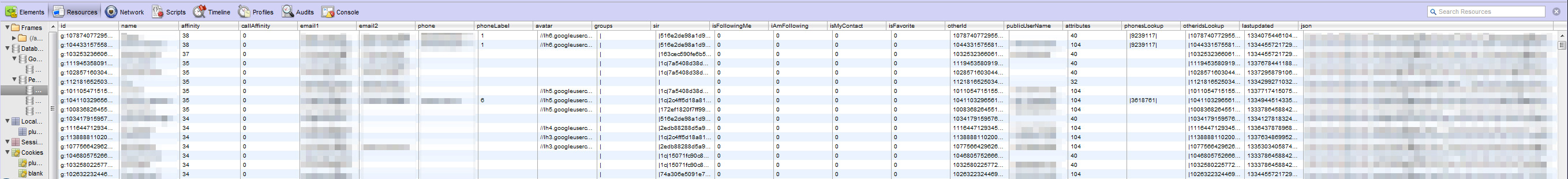 For example, one piece of data that we don’t usually have access to is how Google sees our relationships to other users. Looking at the database, it appears that Google ranks how close we are (our affinity) to other Google Account users and provides Google+ with access to this data.