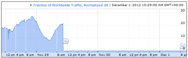 Google’s Transparency Report, which shows how governments and the public interact with Google’s different services, shows a clear cut in internet communications on November 29 in Syria.