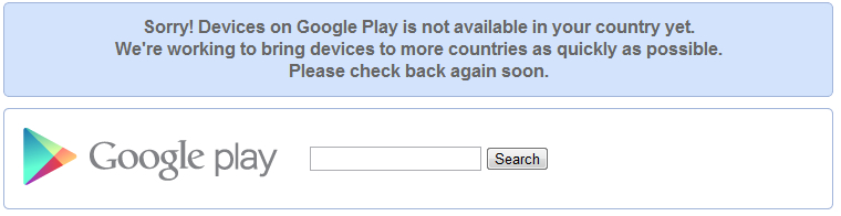If, like us, you don’t live in one of those four countries this is the message you see when you attempt to even look at the Nexus 7 Device page on Google Play.